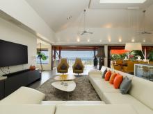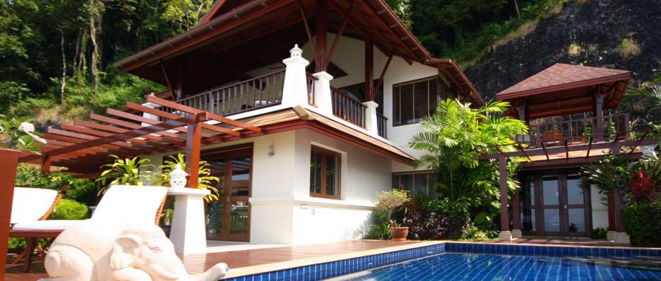 The fourth bedrooms are situated on the lower level and all have easy access to the gorgeous 30 sqm private swimming pool and pleasant tropical garden with a neat lawn. This spacious villa easily accommodates six adults as well as families with children. There are two master bedrooms offering stunning views from the king-size beds, private balconies and whirlpool tubs. The third bedroom can be used as an office or bedroom. It has a king-size bed that can be converted to twin beds, and a large desk overlooking the pool and Andaman Sea providing tropical views while you work.