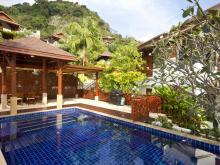 The car port and main entrance to the property are on the upper level where the living areas, swimming pool and garden can be found. Being closer to the sea, the sound of the waves can be heard lapping ashore and the views of the Andaman Sea are beautifully framed with tree tops and tropical palms. Enjoy tasty barbecues at the Thai pavilion next to the azure-blue swimming pool and lounge on the sun beds at the poolside deck.