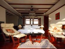 Окруженная зелеными лесами в верхней части комплекса, эта тихая вилла предназначена для того, чтобы произвести впечатление. Из нее открывается впечатляющий вид на залив Патонг. С крытой автостоянки лифт доставит Вас на нижние этажи виллы, где находятся четыре меблированные спальные комнаты. Две прекрасные главные спальни имеют деревянные полы, просторные балконы и ванные комнаты с впечатляющими гидромассажными ваннами. В третьей спальне есть две односпальные кровати, поставленные рядом, которые могут быть преобразованы в большую двуспальную кровать, и отдельная ванная комната с душевой кабиной. Четвертая спальня отделена от главного дома и расположена за бассейном. В ней есть большая двуспальная кровать и отдельная ванная комната с душем.