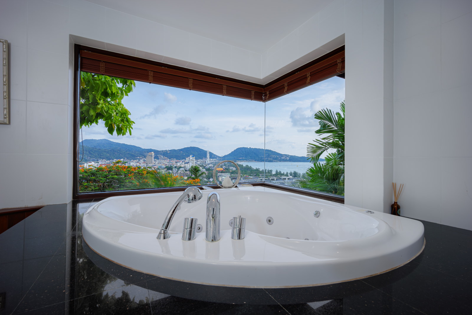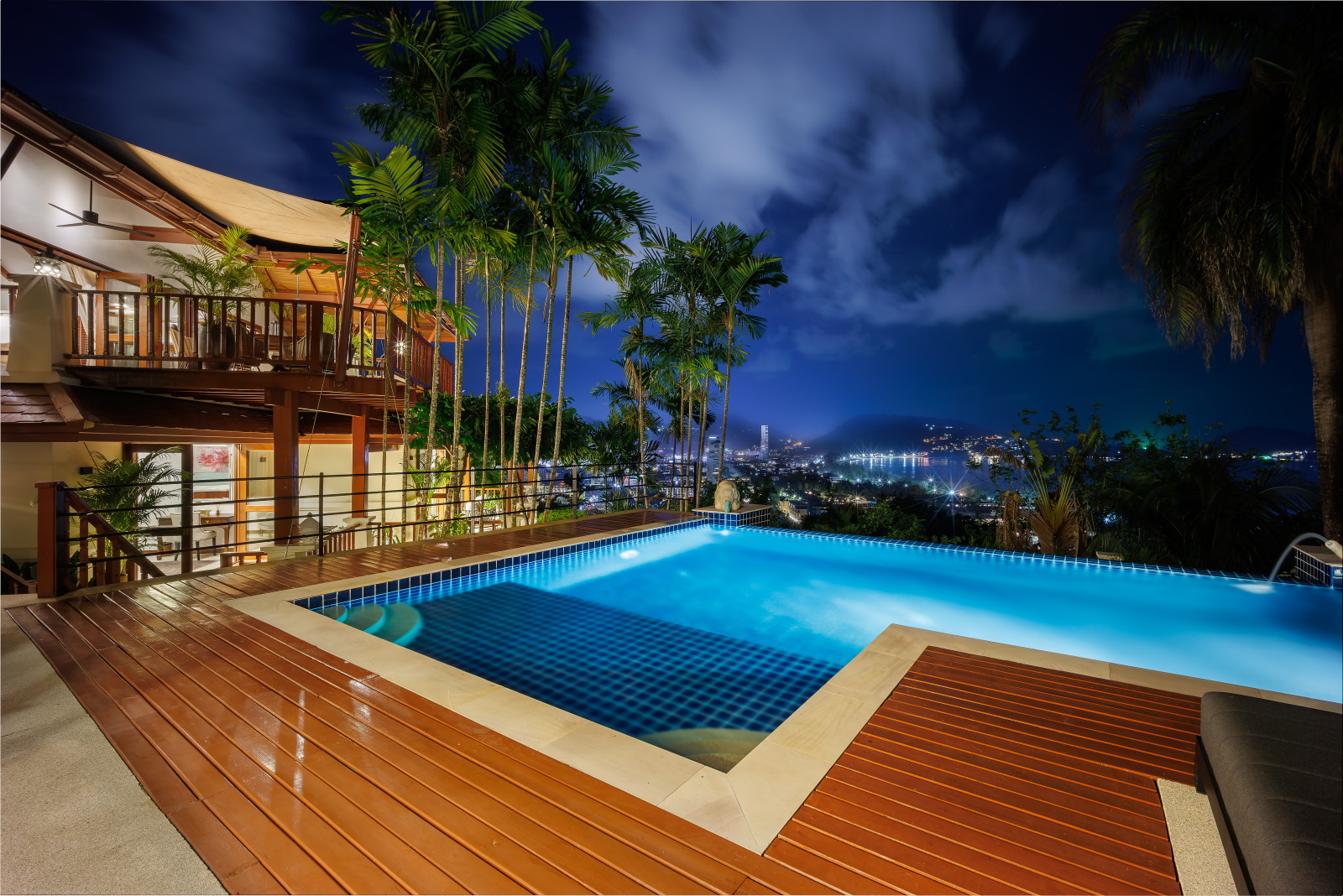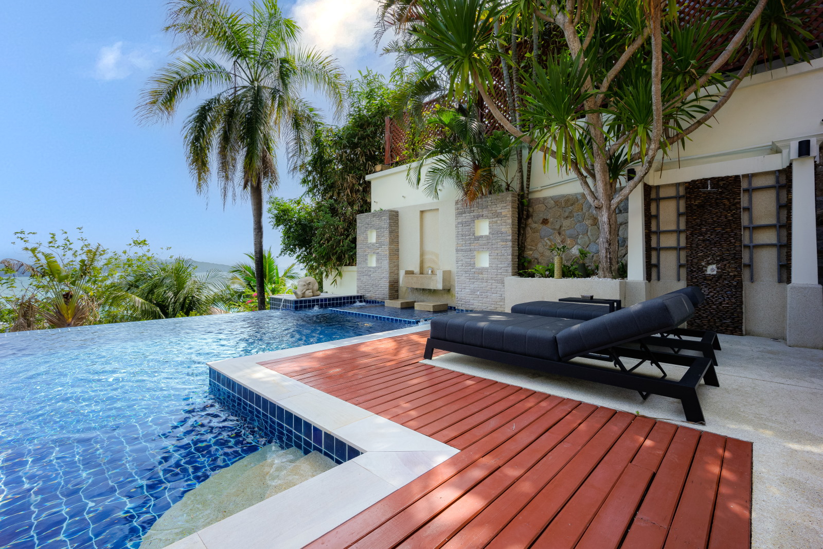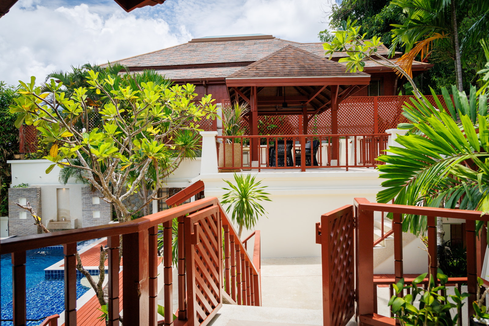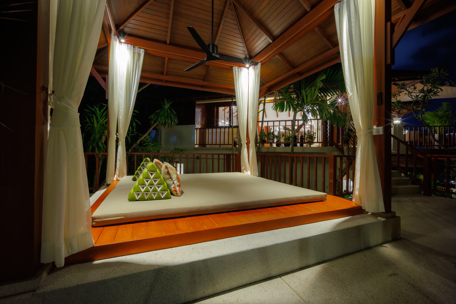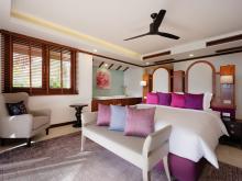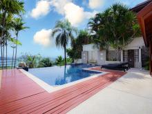 There are four bedrooms all with private bathrooms, an extensive swimming pool and garden. A highlight is the outdoor Thai sala containing a romantic Jacuzzi offering fabulous sea views.