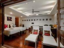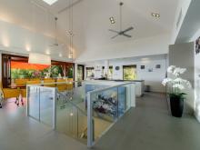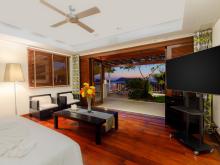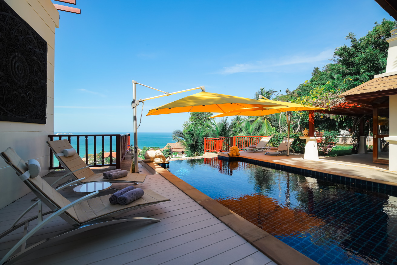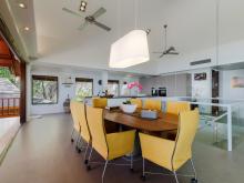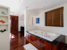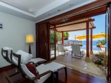The fourth bedrooms are situated on the lower level and all have easy access to the gorgeous 30 sqm private swimming pool and pleasant tropical garden with a neat lawn. This spacious villa easily accommodates six adults as well as families with children. There are two master bedrooms offering stunning views from the king-size beds, private balconies and whirlpool tubs. The third bedroom can be used as an office or bedroom. It has a king-size bed that can be converted to twin beds, and a large desk overlooking the pool and Andaman Sea providing tropical views while you work.